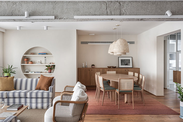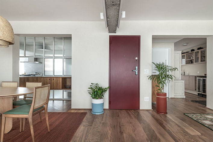 A cliente habitava o apartamento 121 quando surgiu a oportunidade de comprar também o apartamento vizinho. O PM arquitetura foi chamado projetar a junção e reforma dos dois apartamentos, gerando uma unidade com aproximadamente 280m².
