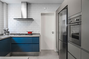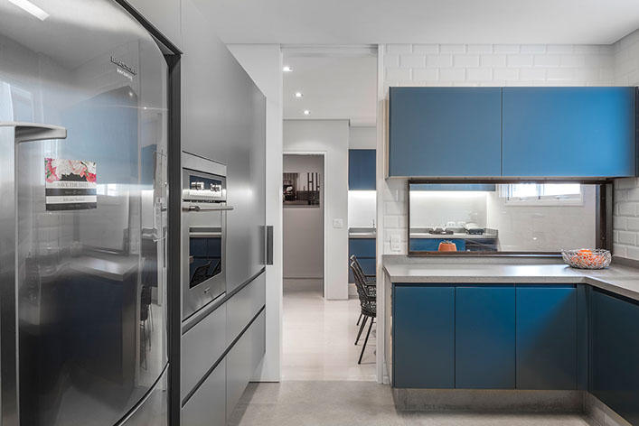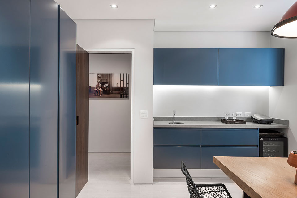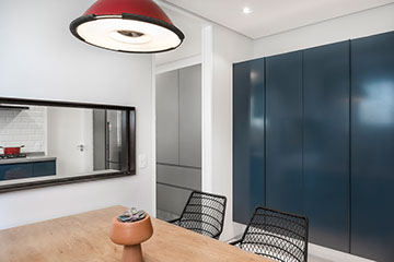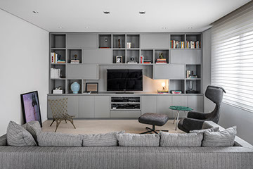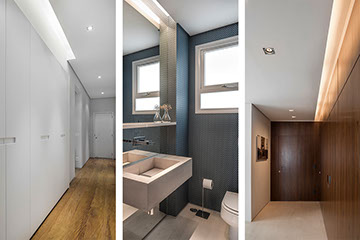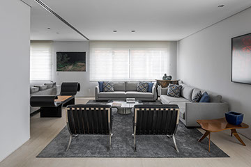 Este apartamento de 260m2 encontrava-se em seu formato original, o de um edifício construído no final da década de 70. O projeto do PM Arquitetura consistiu em adotar uma linguagem contemporânea com elementos modernistas e sofisticados, como o perfil dos clientes. A planta baixa geral foi modificada, respeitando suas prumadas e estruturas. E, com o objetivo de criar ambientes amplos, todos os ambientes sociais (sala de jantar, estar e escritório) foram integrados. Da mesma forma, a área da cozinha foi integrada com a copa, com o cuidado de preservar a privacidade de cada ambiente.