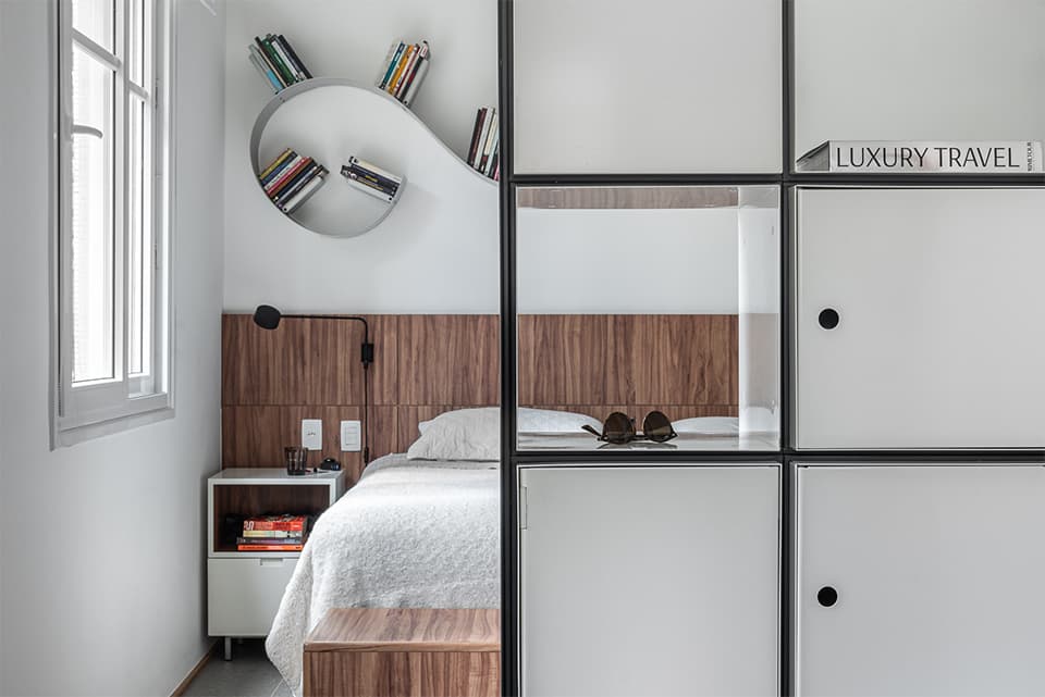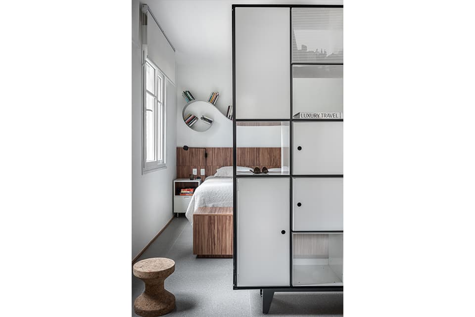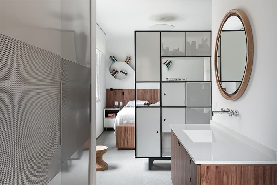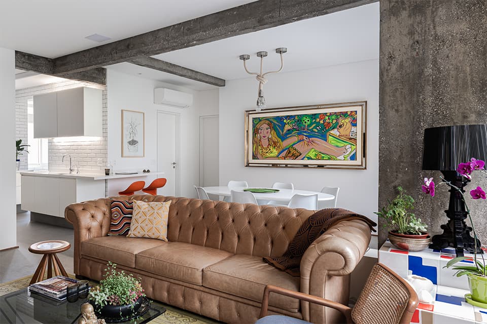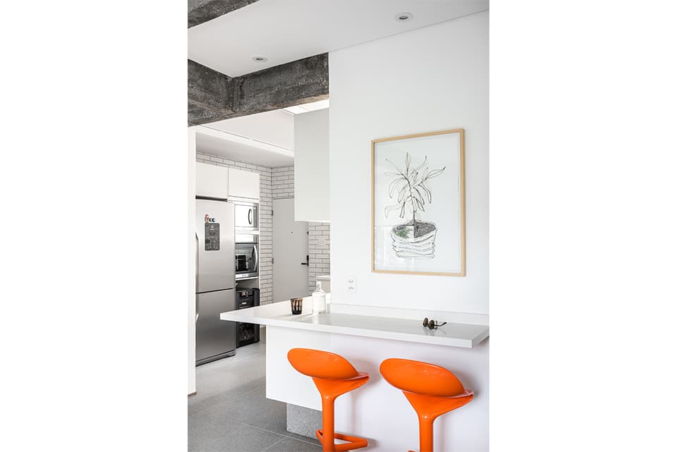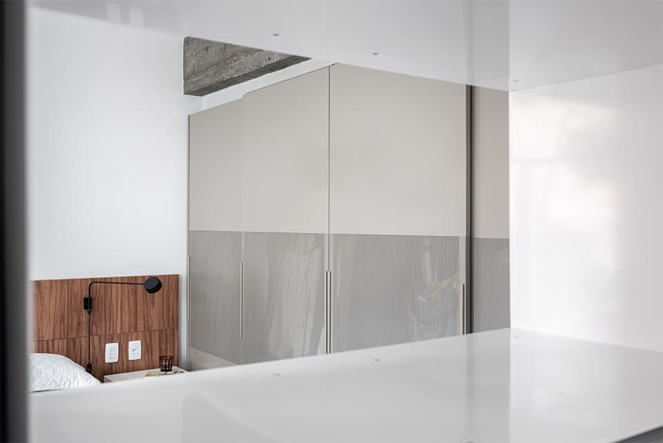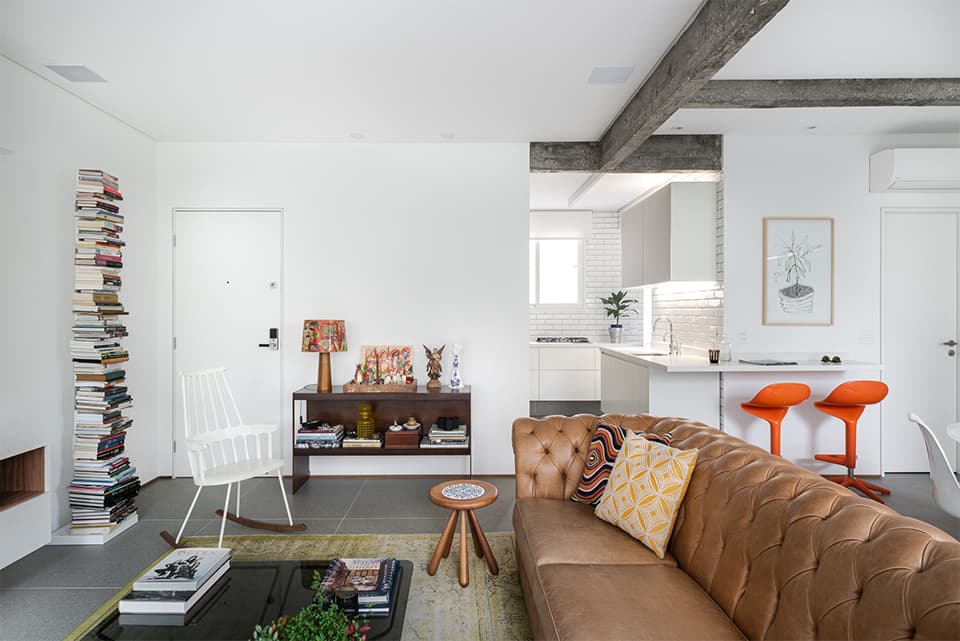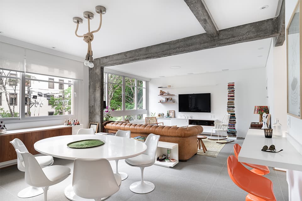 Algumas alterações na planta foram importantes para abrir e integrar a área social bem como transformar os banheiros existentes em um lavabo, banho de serviço e suíte. Outra atualização importante foi nos caixilhos do apartamento.