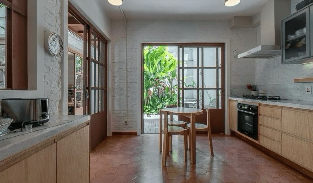 Para esse sobrado localizado na Vila Madalena, buscamos recuperar e restaurar alguns dos itens originais da sua época de construção, década de 70, ao mesmo tempo em que buscamos modernizar e integrar os ambientes principalmente das áreas sociais, a fim de trazer modernidade e atender ao desejo de uso dos clientes. Tudo isso se integra perfeitamente a área externa da casa que recebeu pedra portuguesa e o paisagismo tropical do paisagista Bruno Moreno.