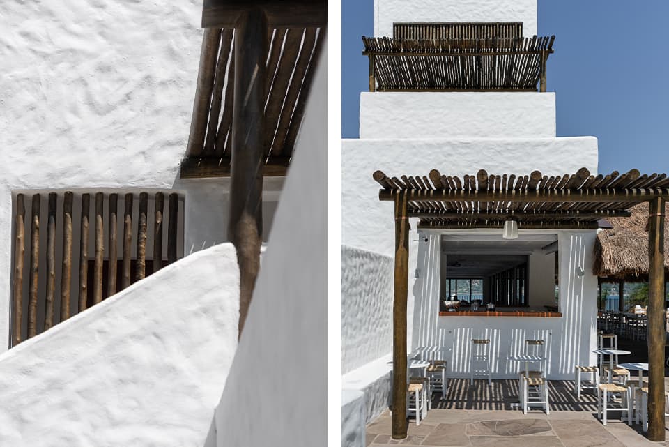 A nova identidade do Miradouro nos inspiramos em algumas características das construções do mediterrâneo, litoral português, Comporta, com um ar “rustico chique despretensioso praiano”.